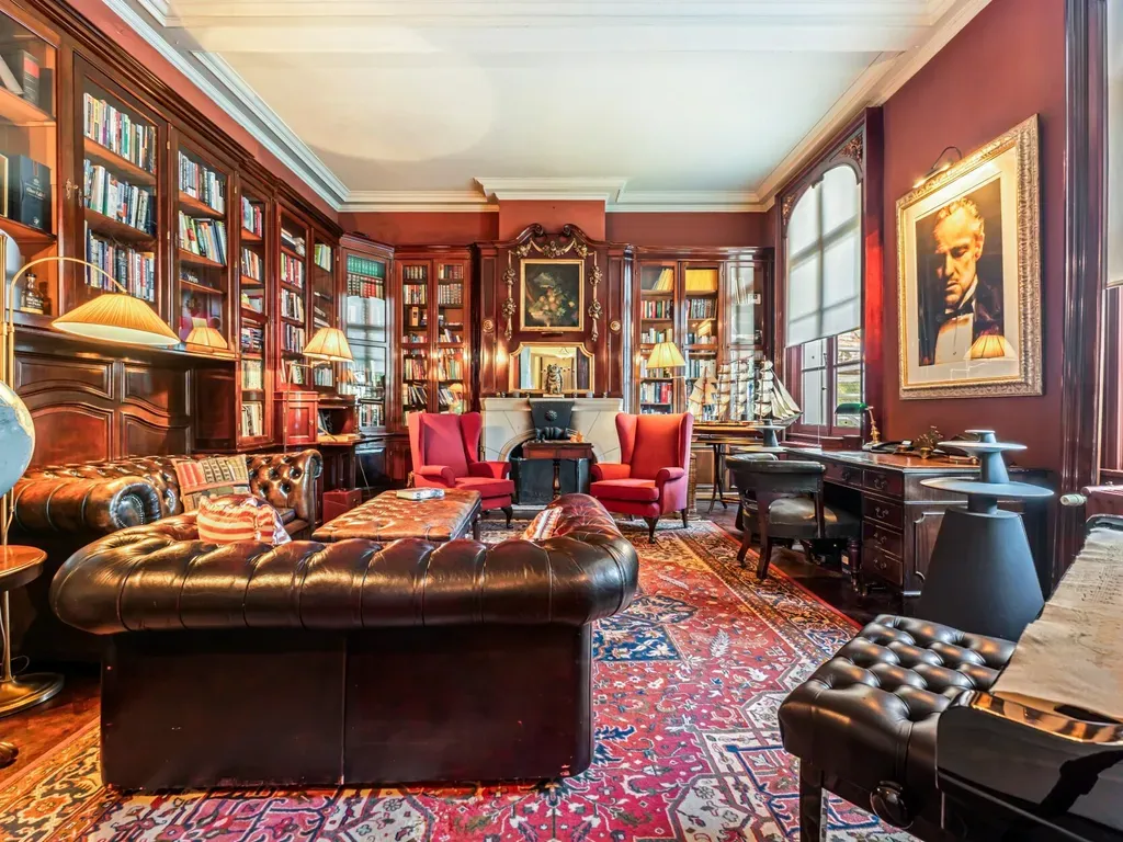 Het herenhuis betreden we via een centrale inkomhal waar de klassieke stijl en het authentieke interieur bewaard werd. Links van de inkomhal is er een ruime ontvangstruimte of kantoor en aan de rechterzijde een prachtige bibliotheek. Vanuit de ruime leefruimte met aansluitend de volledig ingerichte landelijke keuken hebben we een prachtig uitzicht op de grote zwemvijver en zijn groene omgeving. Aansluitend naast de keuken vinden we een gezellige bar die ook overloopt van authenticiteit en gezelligheid. Verder treffen we hier ook nog een ruime berging een garage en een technische ruimte. Aan de andere kant van de leefruimte treffen we een extra woonkamer, momenteel gebruikt als kantoor.