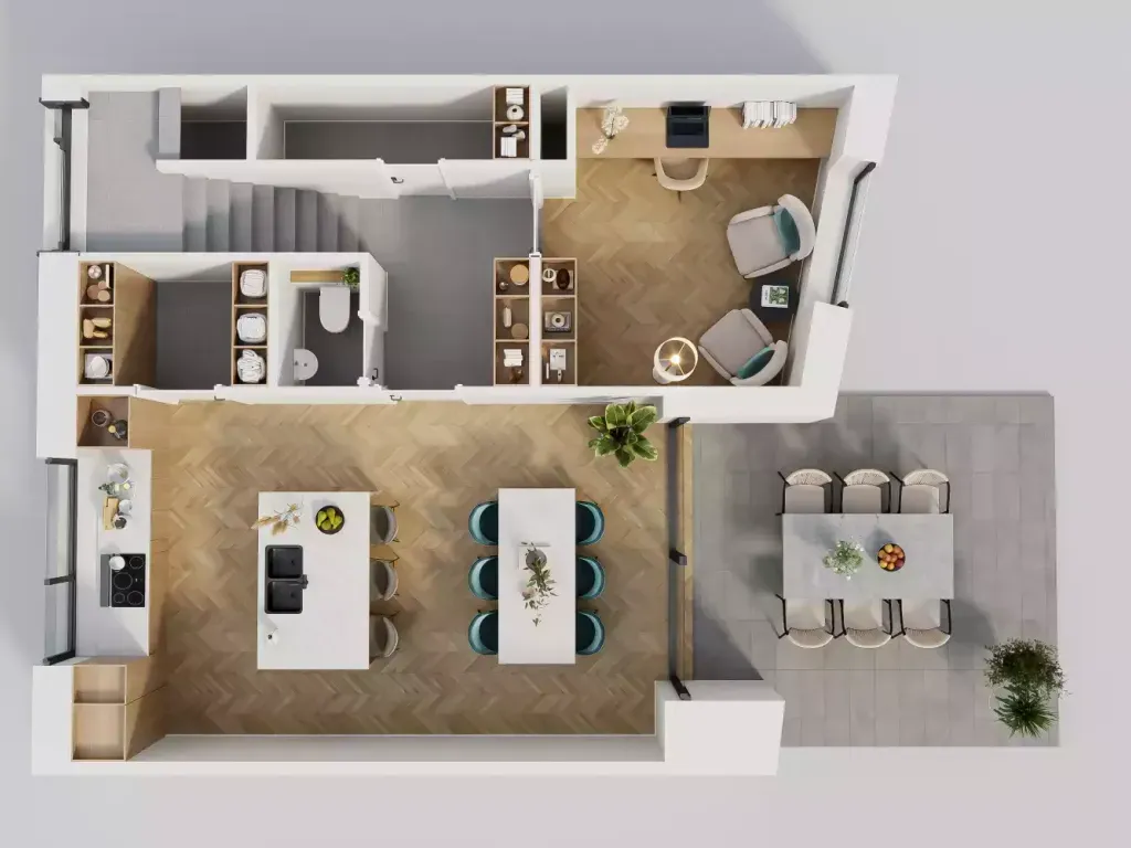 Ook de binnenafwerking staat volledig in het teken van kwaliteit en personalisatie. Voor meer info of een presentatie bij ons op kantoor, contacteer ons via 0471 / 471 481 of info@aefimmo.be.