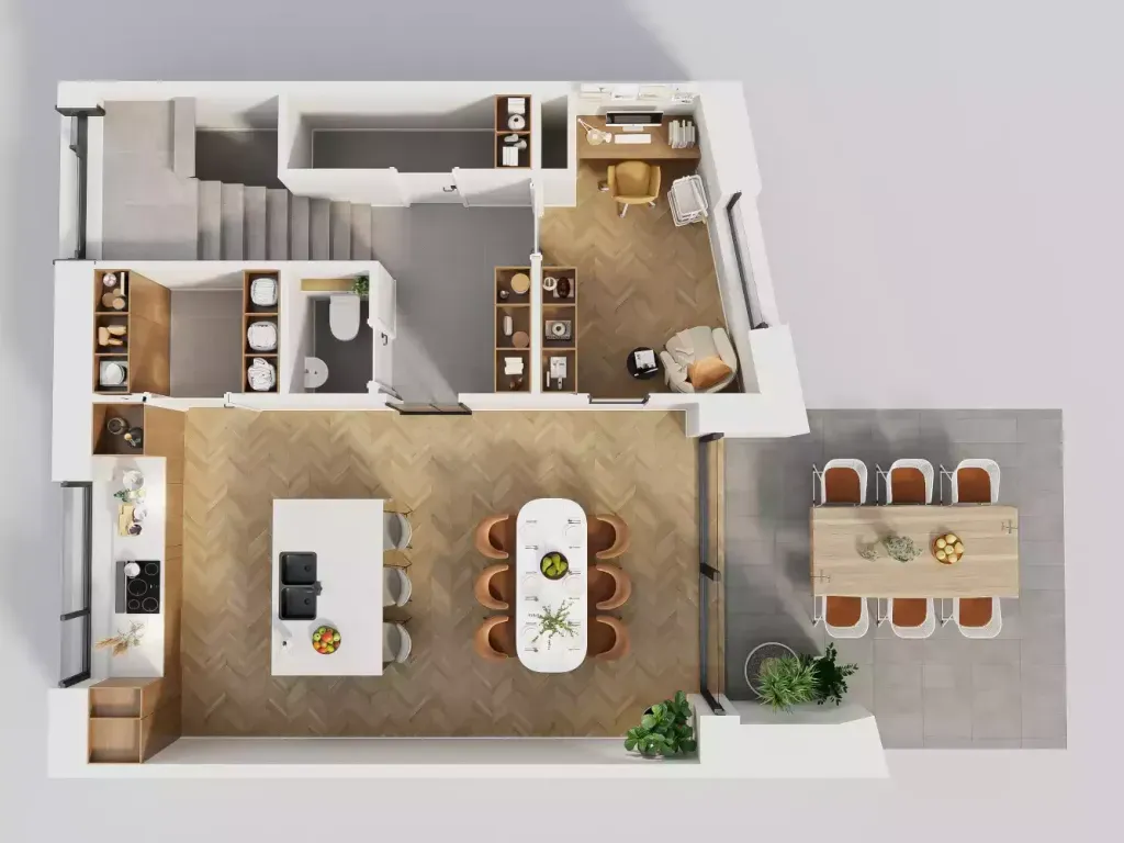 Ook de binnenafwerking staat volledig in het teken van kwaliteit en personalisatie. Voor meer info of een presentatie bij ons op kantoor, contacteer ons via 0471 / 471 481 of info@aefimmo.be.