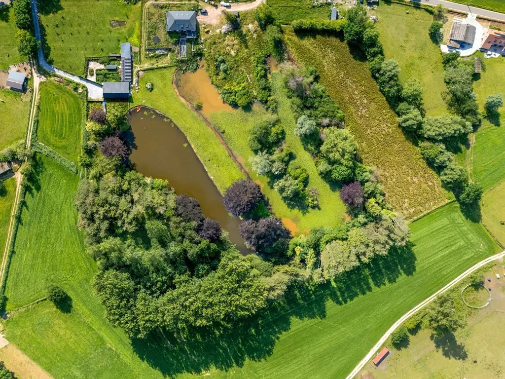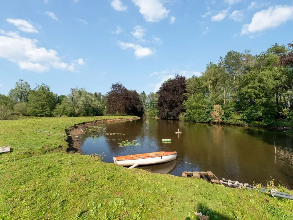 Het perceel van ca. 2,9 hectare omvat een prachtige natuurvijver, weiland, een buitenzwembad in aanbouw en stallen die momenteel als fietsatelier worden gebruikt maar eenvoudig kunnen worden ingericht voor paardenliefhebbers. De tuin en omliggende natuur bieden absolute privacy en rust.