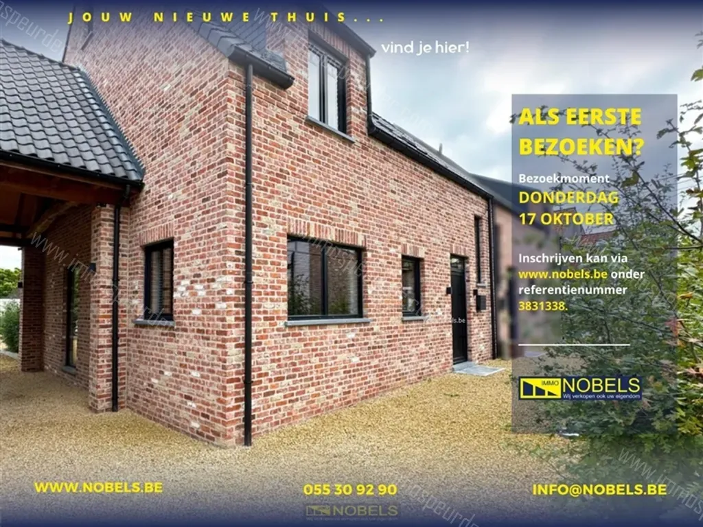 Paulatemstraat 61B - 9630 Zwalm - Eerste bezoekdag donderdag 17 oktober! Inschrijven kan via www.nobels.be onder referentienummer 3831338.PITTORESK GELEGEN NIEUWBOUWWONING met LUXUEUZE UITSTRALING en een gezellige tuin, die deel uitmaakt vaan een PRACHTIGE WOONSITE in de molengemeente Zwalm. Hier komt men tot RUST! Deze lichtrijke halfopen bebouwing is uitgerust met ZONNEPANELEN, VLOERVERWARMING VIA WARMTEPOMP en voldoet aan alle laatste energienormen. U wordt verwelkomd in een ruime inkomhal met gastentoilet, gevolgd door een lichtrijke woonkamer die aansluit op een VOLLEDIG INGERICHTE KEUKEN en een praktische berging. De bovenverdieping biedt plaats aan 3 SLAAPKAMERS, moderne badkamer (met INLOOPDOUCHE EN LIGBAD) en een apart toilet. Daarnaast beschikt de woning over een zolder, die ingericht is als 4DE SLAAPKAMER / MASTER BEDROOM. Uw wagen kan u makkelijk parkeren op uw PRIVATIEVE STAANPLAATS die paalt aan de achterzijde. De onderhoudsvriendelijke TUIN nodigt uit tot ontspannen en genieten van de RUST. Gelegen in een LANDELIJKE EN PRACHTIGE OMGEVING, met vlotte toegang tot DIVERSE VERBINDINGSWEGEN.Verkoop onder BTW-stelsel!Adres: Paulatemstraat 61B te ZwalmEPB in aanvraag; G score: A, P score: A