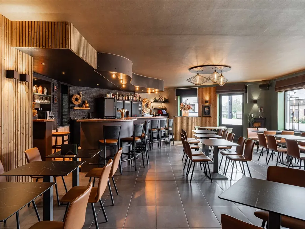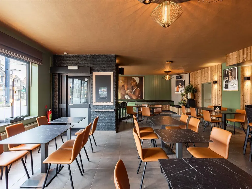 Op het gelijkvloers bevindt zich een ruim horecapand met uitgeruste keuken en een praktische werkindeling. Daarnaast zorgen de aanwezige garage en kelder voor extra opslagruimte en logistiek comfort voor de uitbating.