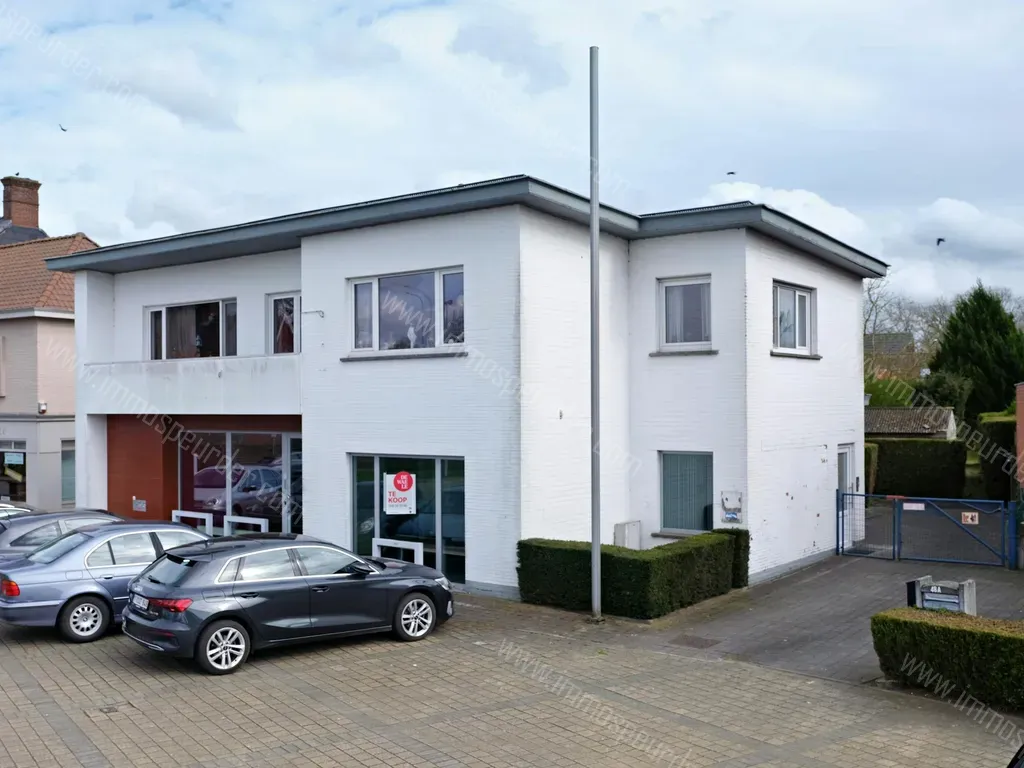 Parkstraat 48 - 8730 Beernem - Goed gelegen kantoor (290 m²) met bovenliggend op te frissen verhuurd appartement (120 m²) te koop op groot perceel van 1035 m² in Beernem. Achterliggend een grote, groene tuin
