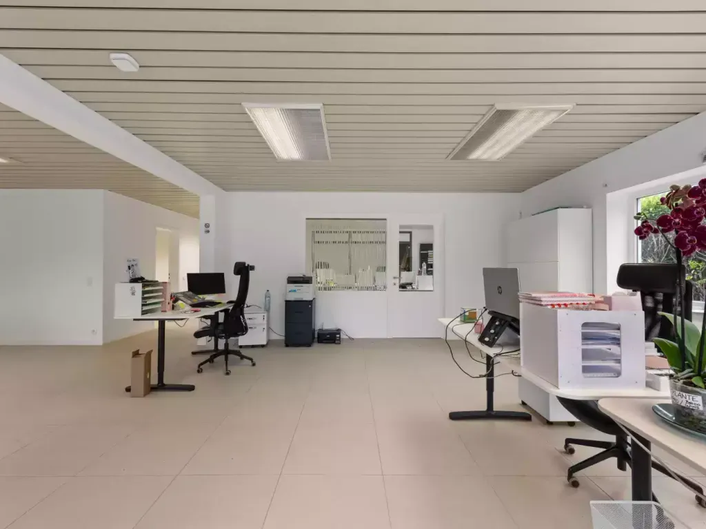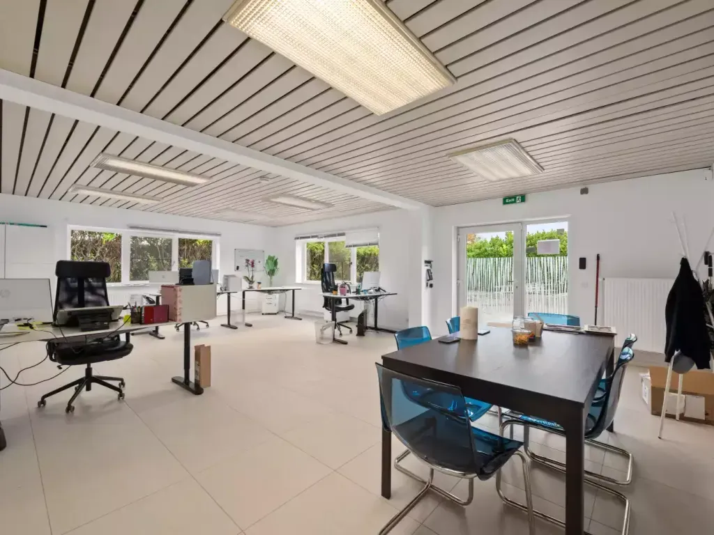 Het aangrenzende bureaugedeelte biedt een aangename werkplek met voldoende lichtinval en kan eenvoudig worden ingericht volgens de noden van uw activiteit. Aan de voorzijde van het gebouw bevindt zich een praktische parkeerzone met een laadpaal voor elektrische voertuigen, wat het geheel extra gebruiksvriendelijk maakt. Het gebouw is bovendien uitgerust met zonnepanelen, wat zorgt voor en lager een duurzamer verbruik.