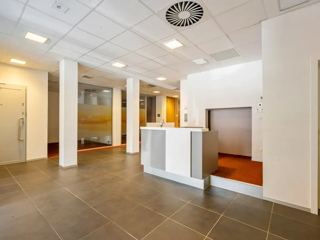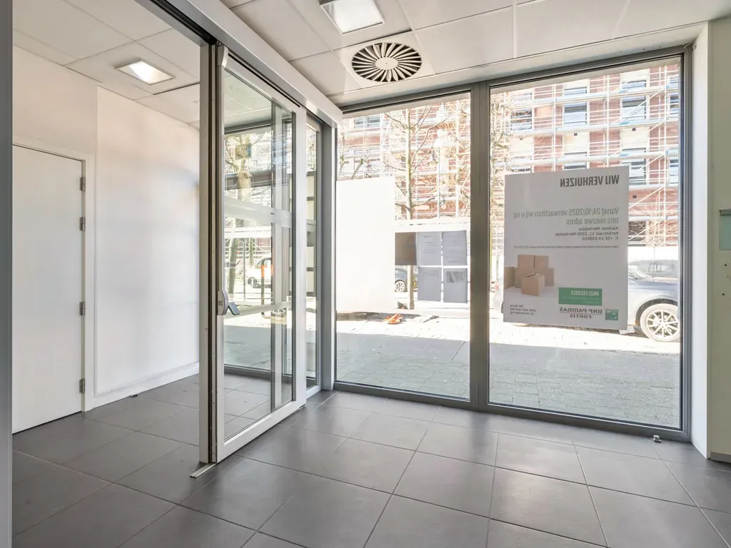 Het gelijkvloerse handelspand heeft een uitstekende visibiliteit en deed voorheen dienst als bank- en verzekeringskantoor. Het handelsgelijkvloers omvat een oppervlakte van +/- 481m² en is geschikt voor diverse commerciële activiteiten of kantoorfuncties door de indeling die in verwijderbare wanden werd voorzien. Dankzij de volledige onderkeldering biedt het pand uitzonderlijk veel opslag- of archiefruimte. Overigens is er een aparte sanitaire ruimte aanwezig voor zowel dames als heren, alsook een kitchenette.