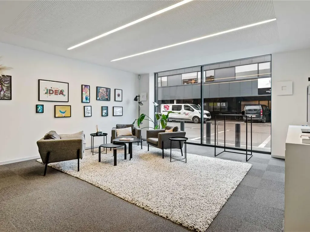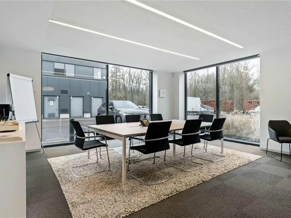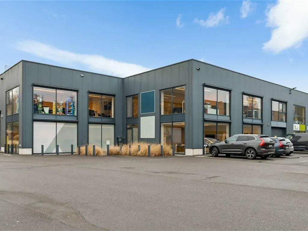 Prins Boudewijnlaan 21e - 2550 Kontich - Uniek bedrijfspand te koop in het KMO-park langs de Prins Boudewijnlaan in Kontich. Het gebouw van 585 m² (325 m² gelijkvloers + 260 m² verdieping) combineert moderne kantoorruimtes met een inpandige opslagplaats en 14 parkeerplaatsen. Het pand is volledig uitgerust met een warmtepomp, airco, automatische zonnewering, veel lichtinval en gescheiden sanitair met doucheruimte en kleedkamer. De indeling omvat een afgesloten inkomhal, receptie met ontvangstruimte, open kantoorruimtes, meerdere aparte kantoren of vergaderzalen, een ruime keuken en een inpandige garage/opslag. Vraagprijs kantoor exclusief parkings: 1.095.000 EUR.