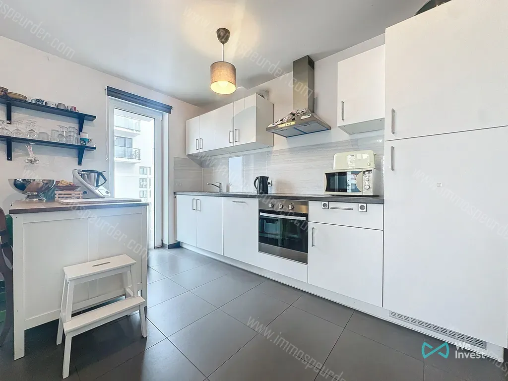 Cet appartement baigné de lumière se compose comme suit : un agréable hall d'entrée, une cuisine super équipée, un living spacieux, une buanderie, 2 chambres ainsi qu'une magnifique terrasse avec vue sur le parc.