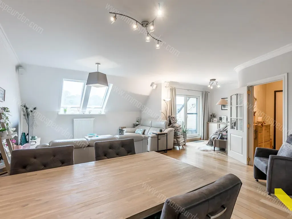 Stationsstraat 42-D - 3945 Ham - Via de inkomhal met apart toilet betreden we de ruime leefruimte met aangrenzend de ingerichte keuken die voorzien is van alle hedendaagse toestellen. Vaatwasser, oven, microgolfoven, inductie kookplaat, koelkast en diepvriezer.