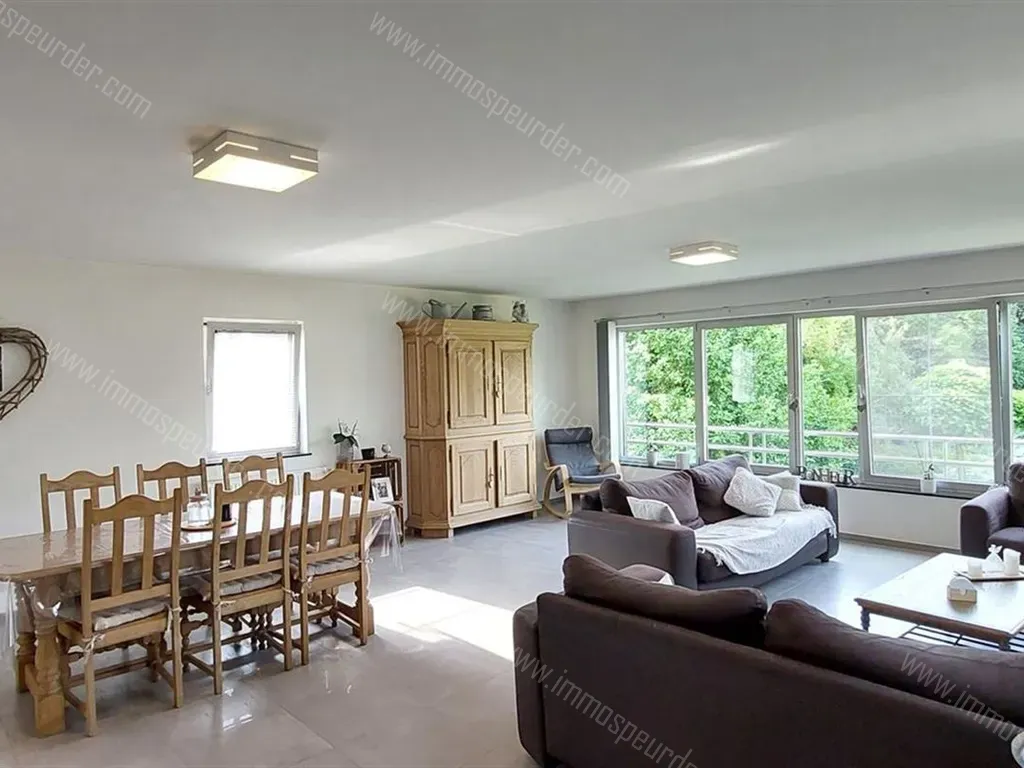 1er Étage : Hall d'entrée avec placard, grand living (+/- 43.5 m²), cuisine hyper équipée - évier simple bac taques vitro hotte four frigo lave-vaisselle + micro-onde - hall de distribution (+/- 11.5m²), W.C., deux chambres (+/- 14 et 13 m²)
