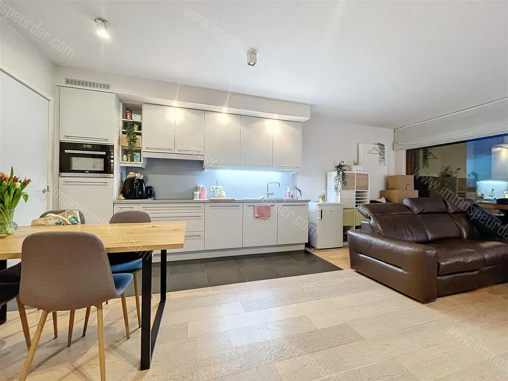 De keuken en leefruimte zijn in een open geheel met elkaar verbonden, waarbij de keuken is uitgerust met alle hedendaags toestellen (kookplaat, oven, vaatwas, koelkast,...). Een praktische berging voorziet in een aansluiting voor wasmachine en droogkast.Het achterliggend uitzicht is weids en van op het terras is het aangenaam genieten. De badkamer is praktisch ingericht met een wastafel en ruime inloopdouche. Er is een afzonderlijk toilet aanwezig. Achterliggend vinden we de slaapkamer (16m²).