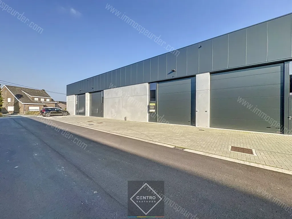 Metaalconstructie met geïsoleerde betonpanelen, bovenkant voorzijde geïsoleerde sandwichpanelen - volledige overspanning - gepolierde betonvloer - plat dak (steeldeck) met isolatie, roofing en centrale lichtstraat met rookkoepel - vrije hoogte 6m - elektrische sectionale poort Hormann (B: 5,15m x H: 4,40m) - afzonderlijke loopdeur met bovenlicht - toilet en uitgietbak voorzien - LED-verlichting.