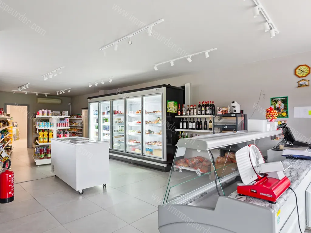 Gelijkvloers : ingerichte winkelruimte, achteraan berging met nieuwe koelcel.