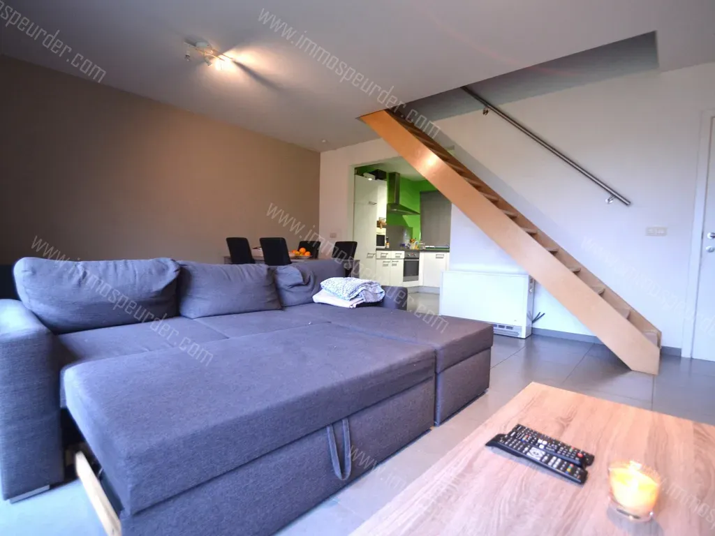 Le bien dispose au rez-de-chaussée d'un hall d'entrée avec placards intégrés, grand living lumineux (salon et salle à manger) avec escalier apparent et cuisine ouverte entièrement équipée avec plaque de cuisson électrique, hotte, four, réfrigérateur, freezer, lave-vaisselle, évier, plan de travail et nombreux rangements intégrés.