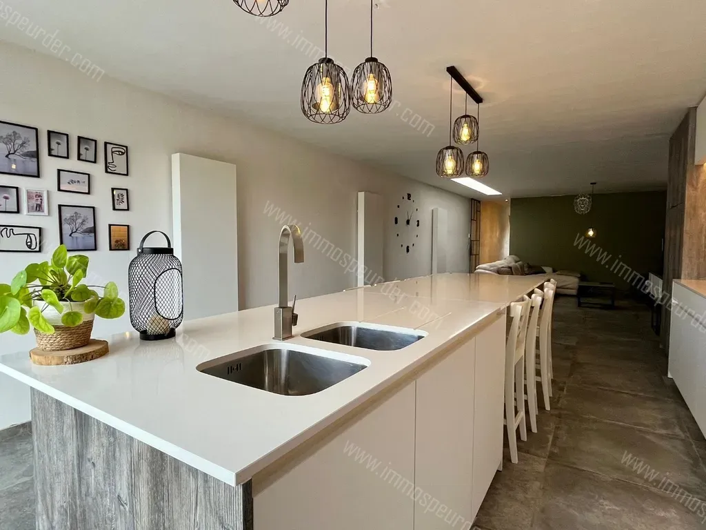 Brugsesteenweg 217 - 8520 Kuurne - Gerenoveerde woning te huur in Kuurne! Bij het binnengaan van de woning kom je in de gang die je leidt naar de ruime lichtrijke leefruimte met uitgeruste keuken. In de keuken is er een vaatwaas, oven, kookplaat, dampkamp en dubbele afwasbak aanwezig. Je hebt hier zicht op de verzorgde west georiënteerde tuin.