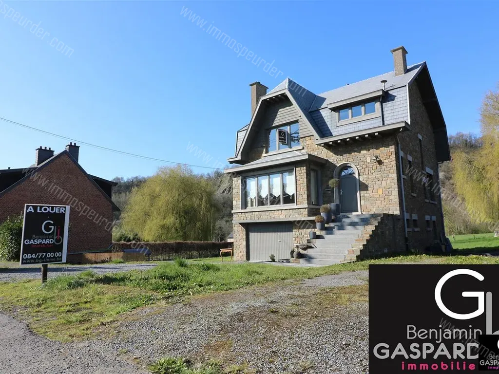 Rue des Écoles 93 - 4171 Poulseur - - OPTION - POULSEUR: mise en location d'une très belle maison d'habitation en pierres emménageable immédiatement sur et avec terrain de 941m². Elle se compose comme suit: caves et garage sous toute la superficie de la maison avec un accès direct au jardin, hall d'entrée, wc indépendant, cuisine équipée, salle à manger, salon/living, hall de nuit, 3 chambres, salle de douche. Cette bâtisse de caractère vous offre de très beaux volumes lumineux et peut vous y accueillir directement au vu de son très bon entretien. Située à proximité de toutes commodités et non loin d'un accès à l'autoroute E25 LIEGE/LUXEMBOURG vous pourrez bénéficier d'une habitation équipée de châssis double vitrage en bois, d'un chauffage central avec production d'eau chaude installé en 2016, une k7 à bois fonctionnelle installée dans le living. Pour les extérieurs une terrasse en bois installée à l'arrière du bâtiment qui bénéficie d'une vue directe sur le grand jardin. Libre à partir du 01/07/2023. 950€/mois + 25€/mois à titre de charges (entretien du système de chauffage et assurance abandon de recours contre le locataire comprise). Condition avant signature du bail 2 mois de caution locative et le premier mois de loyer. A visiter sans tarder!