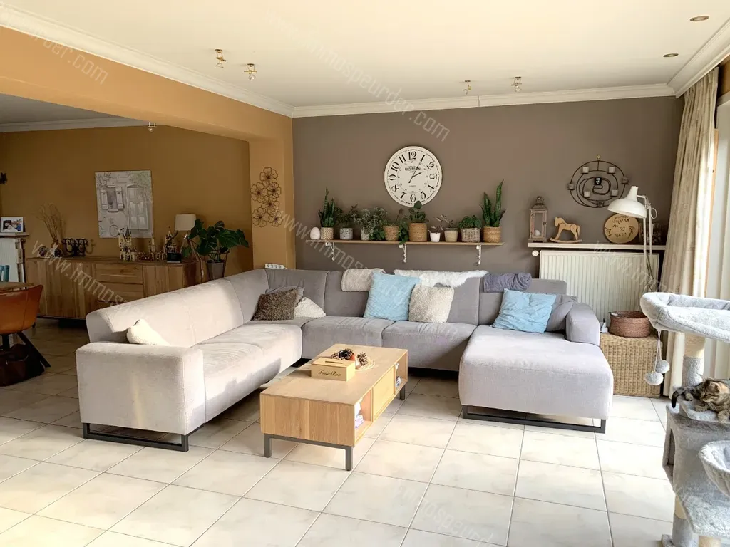 Deze woning omvat: inkomhal met vestiaire, ruim woonverdiep met afzonderlijk toilet, lichtrijke woonkamer uitgerust met een houtkachel en voorzien van toegang tot het leefterras.