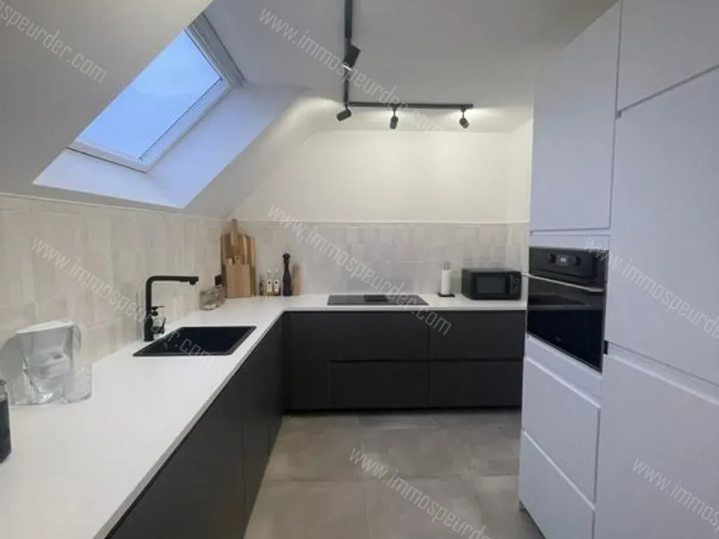 Benedenverdieping: inkomhal, toilet, woonkamer met aansluitende de gesloten keuken. De keuken is volledig uitgerust: vaatwasser, inbouwkoelkast, oven, microgolfoven en een inductiekookplaat met ingebouwde dampkap. Als laatste is er nog een kleine berging.