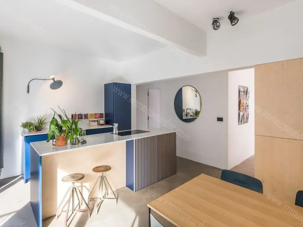 De open keuken staat in verbinding tot de eet- en leefruimte en doorheen het volledige appartement ligt een mooie gietvloer in microbeton.