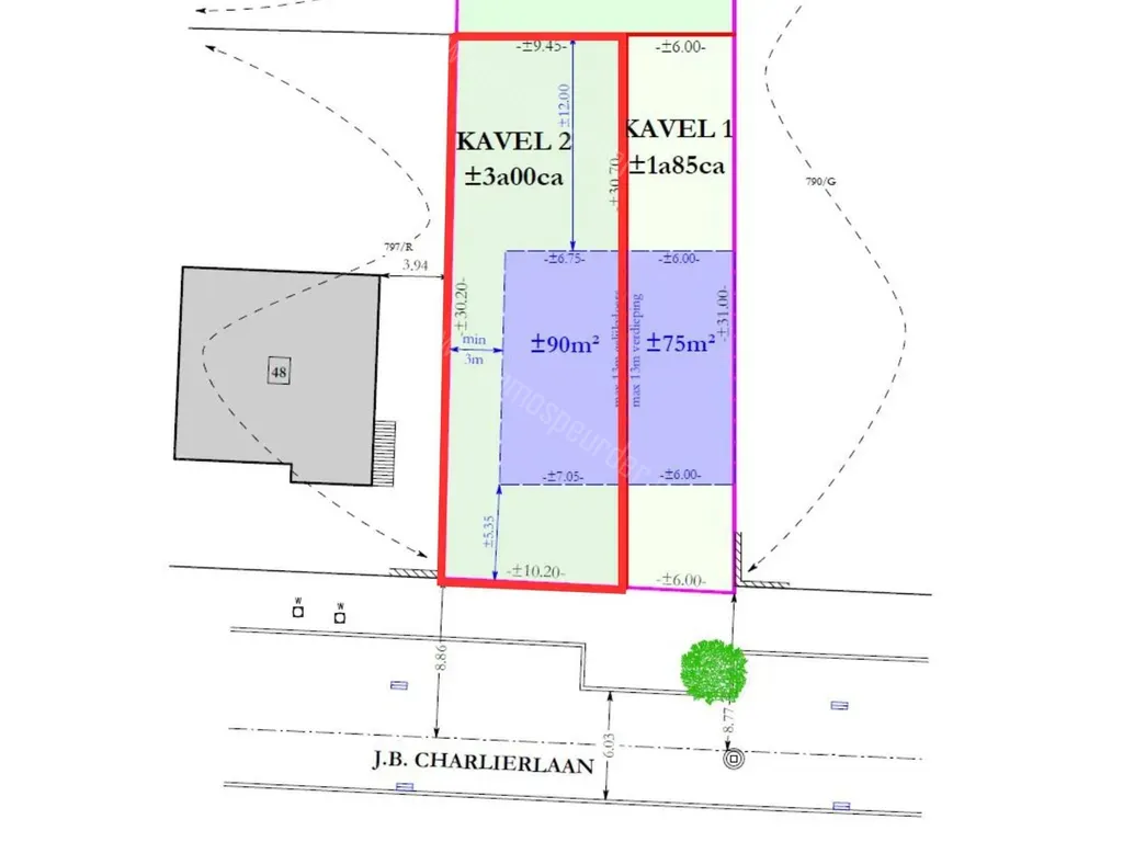 J.B. Charlierlaan 46 - 1560 Hoeilaart - Bouwgrond voor een 3-gevel woning, ideaal gelegen tussen het centrum van Hoeilaart en het station van Groenendael.