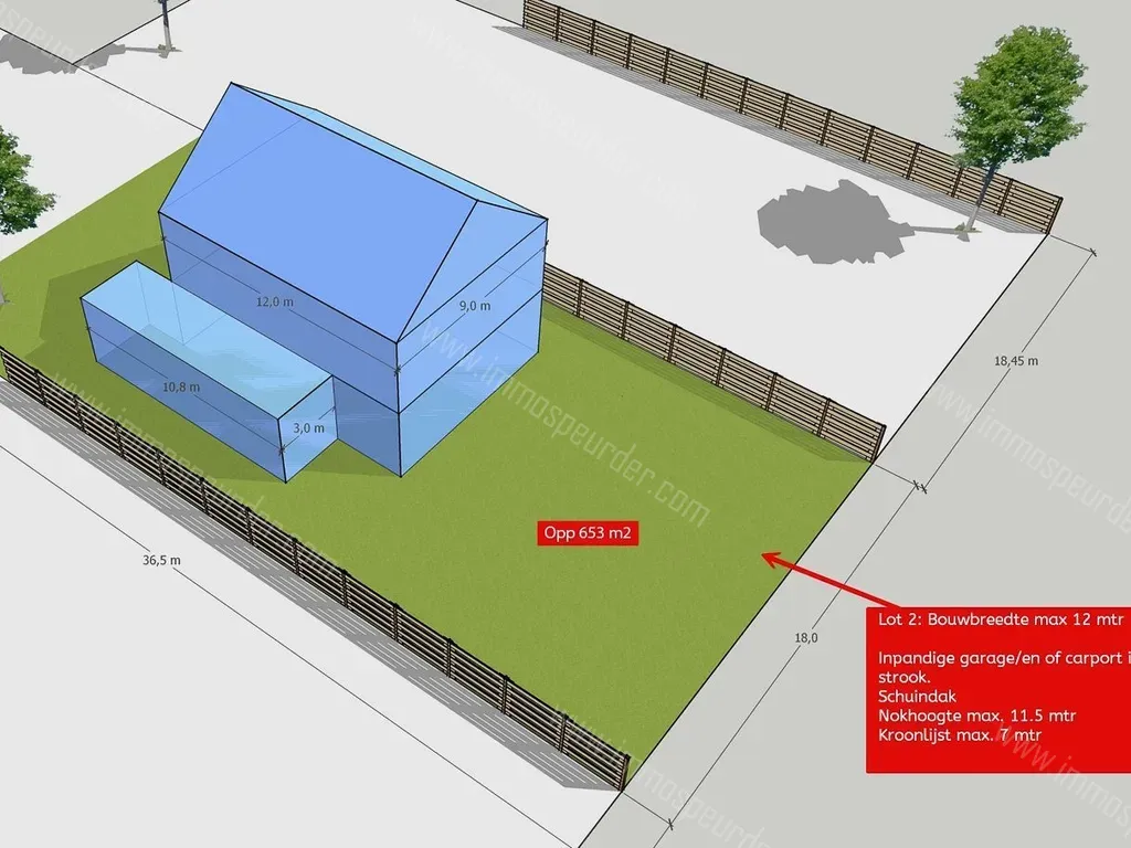 Bouwgrond voor open bebouwing onder schuin dak met bouwbreedte van 12m !