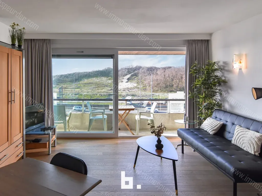 Kapelstraat 41 - 8450 Bredene - Deze studio bevindt zich op vijf minuutjes wandelen van het strand. Een aanrader voor wie een tweede verblijf aan zee zoekt. De studio bevindt zich op de 4de verdieping van een hedendaags gebouw en biedt een panoramisch uitzicht op de duinen. De indeling is als volgt: lichtrijke leefruimte met open keuken (kookplaat, dampkap, microgolfoven, spoelbak, vaatwasser), aanpalend zonneterras, slaaphoek met inklapbaar bed, badkamer (bad/douche combinatie, wastafelmeubel), afzonderlijk toilet, berging. Het gebouw beschikt over een lift en een gemeenschappelijke fietsenberging in de kelderverdieping. De studio wordt inclusief meubels verkocht.