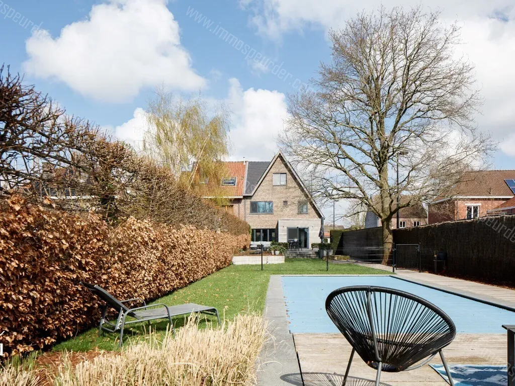 In de volledig aangelegde tuin bevinden zich een lange smalle vijver en een zwembad met terras om volop van de zon te kunnen genieten. Achteraan heeft u ook een ruime poolhouse met berging en apart toilet. Alsook een aparte uitgang naar de straat.
