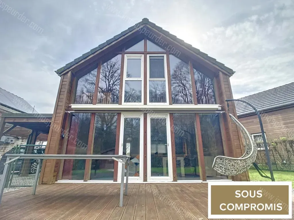 Rue de l'Ecureuil 11 - 6441 Erpion - ERPION: Magnifique chalet de 2012 à quelques pas des Lacs de l'Eau d'Heure comprenant 3 Chambres, grand Séjour, Cuisine, Salle de bain, WC séparé, Hall d'entrée, Hall de nuit, Jardin et Terrasse avec vue sur la forêt environnante. Idéalement situé à quelques minutes des plages, d'un centre Aquatique, centre de Bien-être, terrains de Tennis, Restaurants, Commerces, Natura Parc, Minigolf, Bike Parc, Ski nautique, Jetski, Kayak, Balades à vélo, Randonnées, Activités pour enfants, etc. Investissement idéal pour une bulle d'air dans le cadre exceptionnel des Lacs de l'Eau d'Heure. FAIRE OFFRE A PARTIR DE 180.000€. Sous réserve d'acceptation des propriétaires. PERFORMANCES ENERGETIQUES: PEB N°20240308022455 - PEB: D - E spec: 269 kWh/m².an - E totale: 26.333 kWh/an.