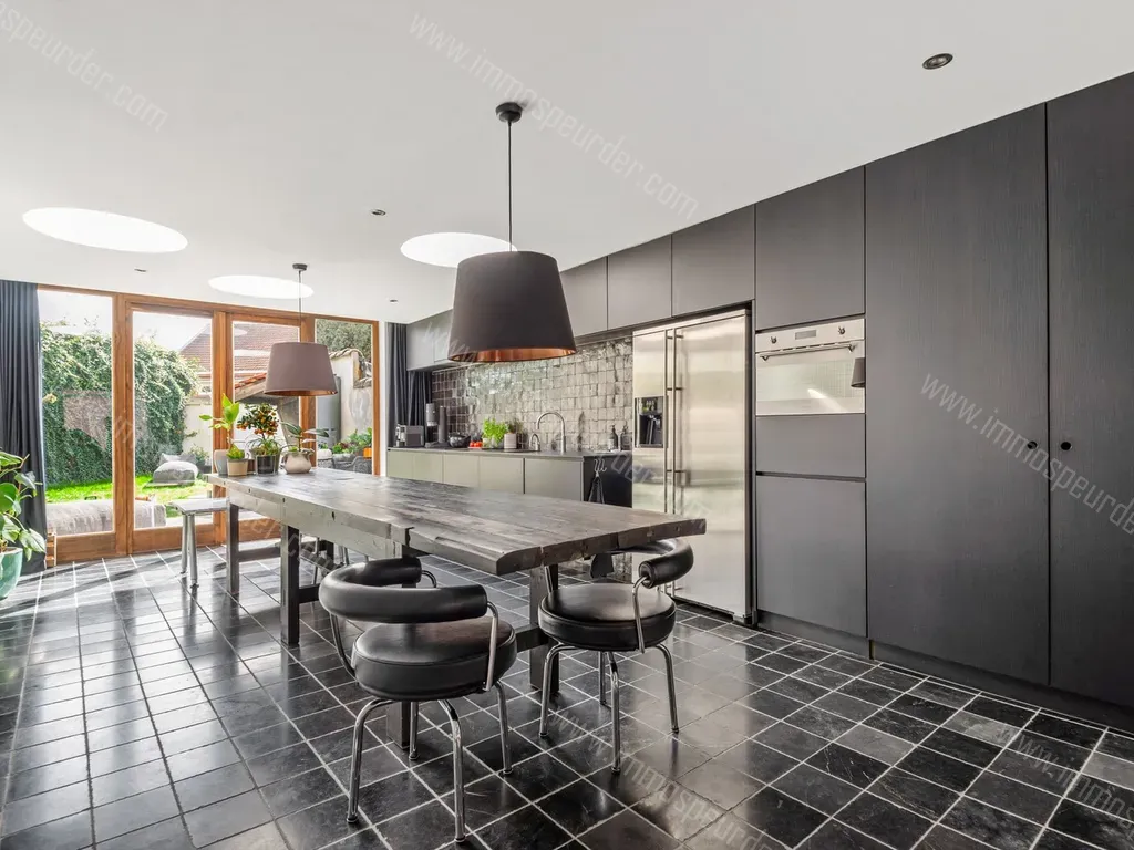 De keuken geeft toegang tot de kelderverdieping dewelke kan dienen als opslagruimte. De grote raampartijen achteraan de woning geven toegang tot de zuid gerichte tuin en terras.