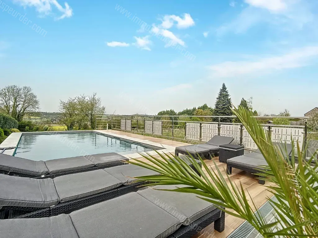 Rue du Mont Falise 109 - 4500 Huy - Patrick Bollue (IPI516.745) van ERA LABELIMMO heeft het genoegen u deze prachtige villa met 3 slaapkamers van 290 m² aan te bieden, waarvan 199 m² woonoppervlak, gelegen in de woonwijk Mont Falise. Rustig en met een adembenemend uitzicht over de vallei van Antheit, is de locatie ideaal omdat het dicht bij alle voorzieningen ligt, zoals winkels, scholen, bus, station, E42... Het huis bestaat uit *BEGANE GROND: 105m² - inkomhal, woonkamer, eetkamer, volledig ingerichte keuken (nieuwe Electros 2023: dampkap, inductiekookplaat, vaatwasser), bijkeuken, wc, garage. *VLOER 1: 90m² - nachthal, 3 grote slaapkamers (13, 16 en 17m²), waarvan één met dressing (+ toegang tot de zolder), badkamer, wc. *BEGANE GROND: 100m² - wijnkelder, wasruimte, werkplaats, ruimte voor zwembadmateriaal, verwarmingsruimte, geventileerde ruimte. *BUITEN: zwembad, terras en groot perceel van meer dan 1.600 m². TECHNISCH: PEB B, Elec conforme, boiler thermodynamique (nieuw 2023), adoucisseur d'eau, gaz de ville, châssis anti effraction DV PVC, panneaux Photo (2011 en nieuw 2023), RC net 1326€, matériel piscine haut de gamme, citerne eau de pluie 7500L, volets + alarme...autres infos à voir sur place. Informatie en bezoek op 0486/74.41.66 of huy@eralabelimmo.be Doe een bod vanaf €525.000 onder voorbehoud van aanvaarding door de eigenaar. Plannen en gegevens ter informatie en niet contractueel.