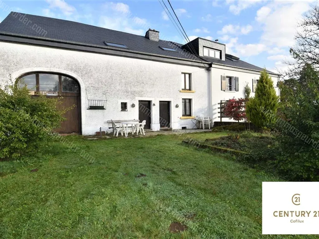 Rue des Jardins 14 - 6821 Lacuisine - VENDU - Century 21 Cofilux vous propose à Lacuisine, une maison 3 façades sur un terrain de 4 ares. La grange située côté gauche vous offre un potentiel d'aménagement (surface 100 m²). Sur le côté droit, nous retrouvons une maison avec un style rustique composée comme suit : Caves sous une partie de la maison. Rez : Hall d'entrée, wc, salle de bain avec douche, buanderie, salle à manger (13,5 m²) bénéficiant d'un accès terrasse, salon (19 m²), cuisine (18 m²). Etage 1 : 2 chambres (15 & 19 m²) en enfilade dont une qui bénéficie d'un accès à une salle de douche et WC. Etage 2 : Grenier aménagé en une chambre (29 m²) avec salle de douche.