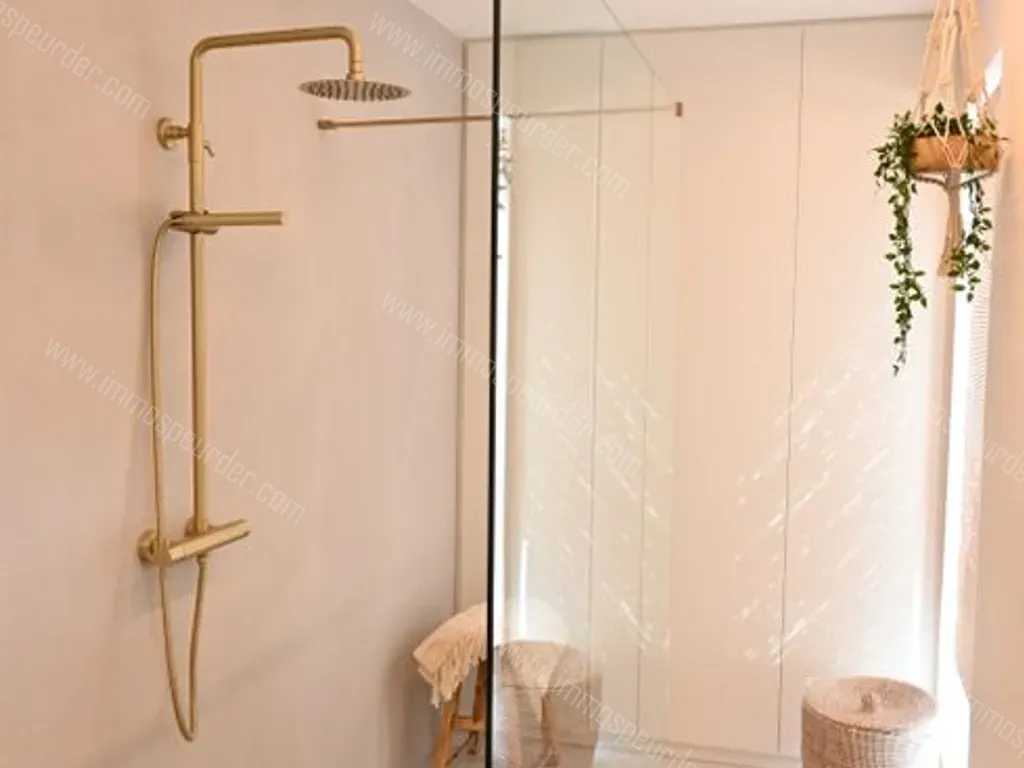 Er is tevens een apart toilet en nieuwe badkamer in microtopping, met inloopdouche en kastenwand waarin de wasmachine weggewerkt werd. Er is ook plaats voor een droogkast.