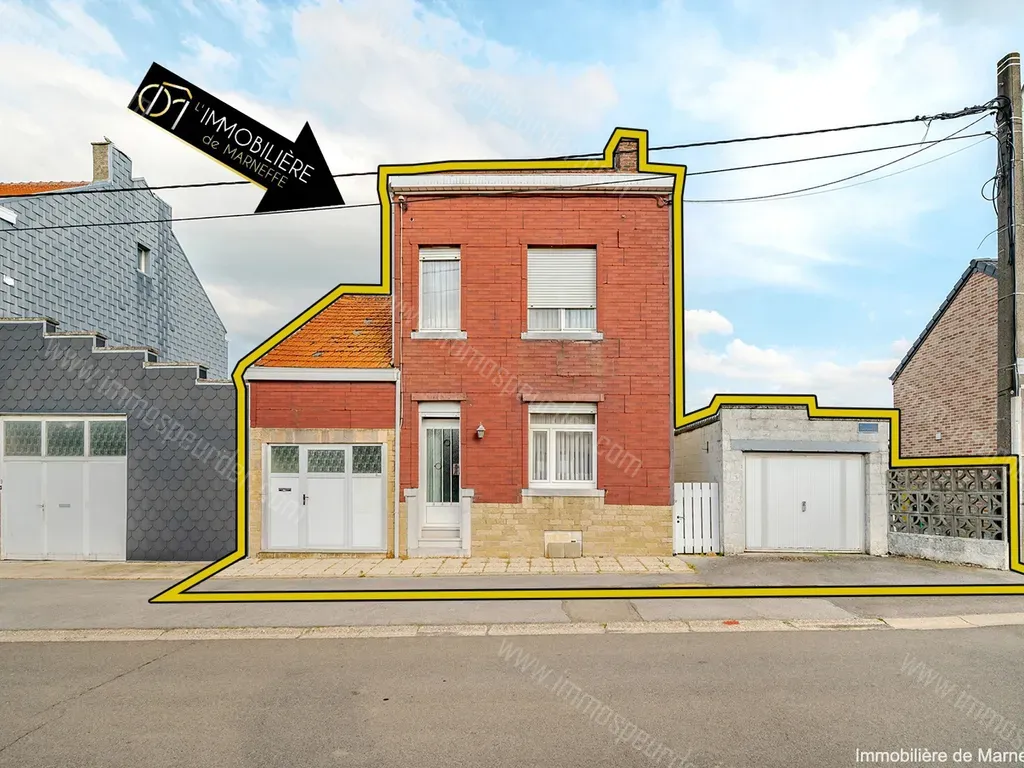 Rue Amand Charlier 7 - 4351 Remicourt-hodeige - OPTION ! OPTION ! OPTION ! L'immobilière de MARNEFFE vous propose cette habitation 3 façades de 140m² habitables au calme à Hodeige. Située sur une parcelle de 1000m², cette maison 3 chambres se compose comme suit au rez : hall d’entrée, salon, salle à manger, cuisine (non-équipée), salle de bain (bain, évier, WC), garage / buanderie et véranda. Au 1er étage : 3 chambres de respectivement 12, 12 et 11m², un bureau/dressing de 5m². Au 2ème : Grenier aménageable de 40m² (escalier déjà présent). Caves de 20m².