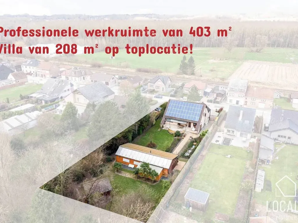 Affligemstraat 51-BB - 1740 Ternat - Villa van 208m² met professionele werkruimte van maar liefst 403m² voor zeer diverse doeleinden. De villa is zeer goed gelegen in een mooie residentiële straat doch nabij treinstation (Essene-Lombeek) alsook op- en afrit E40 Affligem, m.a.w. een uitstekende verbinding richting Brussel & Gent. Scholen, apotheek, boekhandel, bakker, … zijn vlakbij. Het woon- en werkgedeelte is zeer praktisch ingedeeld en van elkaar gescheiden voor een ideale combinatie van wonen en werken. Het woongedeelte beschikt over 3 slaapkamers (4e mogelijk) en 2 badkamers. De villa zelf en het mooie perceel van 17a 90ca genieten veel privacy. Makkelijke inrit, veel parkeermogelijkheden op eigen terrein en een ruime garage zijn eveneens voorzien. Enkele van de troeven van deze eigendom: centrale verwarming op basis van aardgas met condenserende ketel (2018) in combinatie met een warmtepomp (Daikin), EPC B (169kWh/m²), goede isolatie, zonnepanelen (in totaal maar liefst 10.080 Wp – u geniet nog enkele jaren van groenestroomcertificaten aan 450 euro per stuk), elektrische installatie conform, laadpaal voor fietsen aanwezig, … Benieuwd naar meer? Bel 054 23 53 83 of mail info@localsvastgoed.be voor bijkomende inlichtingen en/of een afspraak voor een persoonlijke rondleiding ter plaatse!