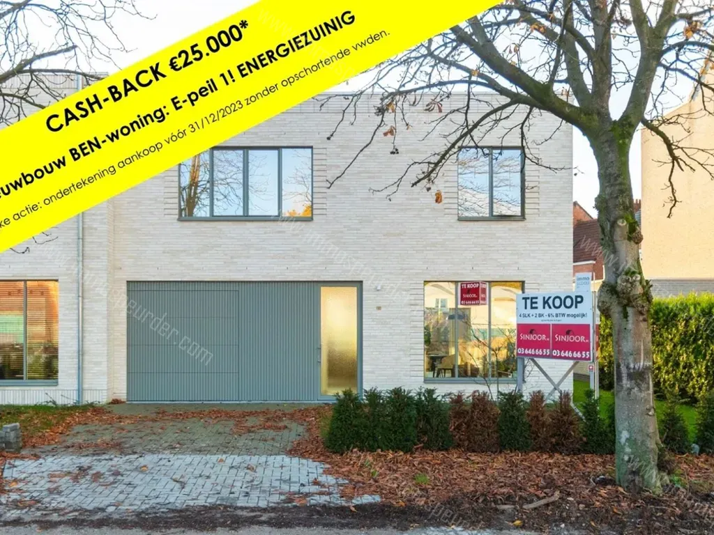 Karel Uytroevenlaan 2A - 2980 Zoersel - !!!ACTIE!!! €25.000 korting op de constructiewaarde bij ondertekening aan-verkoopbelofte zonder opschortende voorwaarden voor 31/12/2023.Zo energiezuinig dat je de komende 5j geen onroerende voorheffing hoeft te betalen. Nieuwbouw half open BEN woning, instapklaar, bij dorp Sint-Antonius. Op wandelafstand van het dorp met winkels, openbaar vervoer. Oprit snelweg vlakbij. Deze nieuwbouwwoning met E-peil 1 is volledig afgewerkt en instapklaar, reeds geschilderd en verlichting geïnstalleerd. Indeling: op het gelijkvloers inkom met gastentoilet, ambachtelijk stalen deur naar de woonkamer. Woonkamer op parket met vloerverwarming. Luxueuze open keuken volledig ingericht met MIELE toestellen. Inpandige garage met elektrische poort en ruime berging met toegang tot de tuin.Tuin is reeds aangelegd, klaar om te genieten! Op de verdieping komt u op een grote overloop met ontspanningsruimte, bureel en dressing/4de slaapkamer. Master bedroom en nog 2 ruime slaapkamers. Badkamer met dubbele wastafel, douche en vrijstaand bad. Douchekamer met lavabo. Technische berging. Pluspunten:+ 12 zonnepanelen en pre-voorziening laden elektrische wagen+ Geschilderd en verlichting geplaatst+ Domotica+ Warmtepomp, vloerverwarming+ E-peil 1!+ aangelegde tuin Contacteer ons ivm de aankoopkosten, 6% BTW op de constructie is mogelijk!! Ben je geïnteresseerd om een kijkje te nemen? Neem contact op met ons via 036466655 of info@sinjoor.be